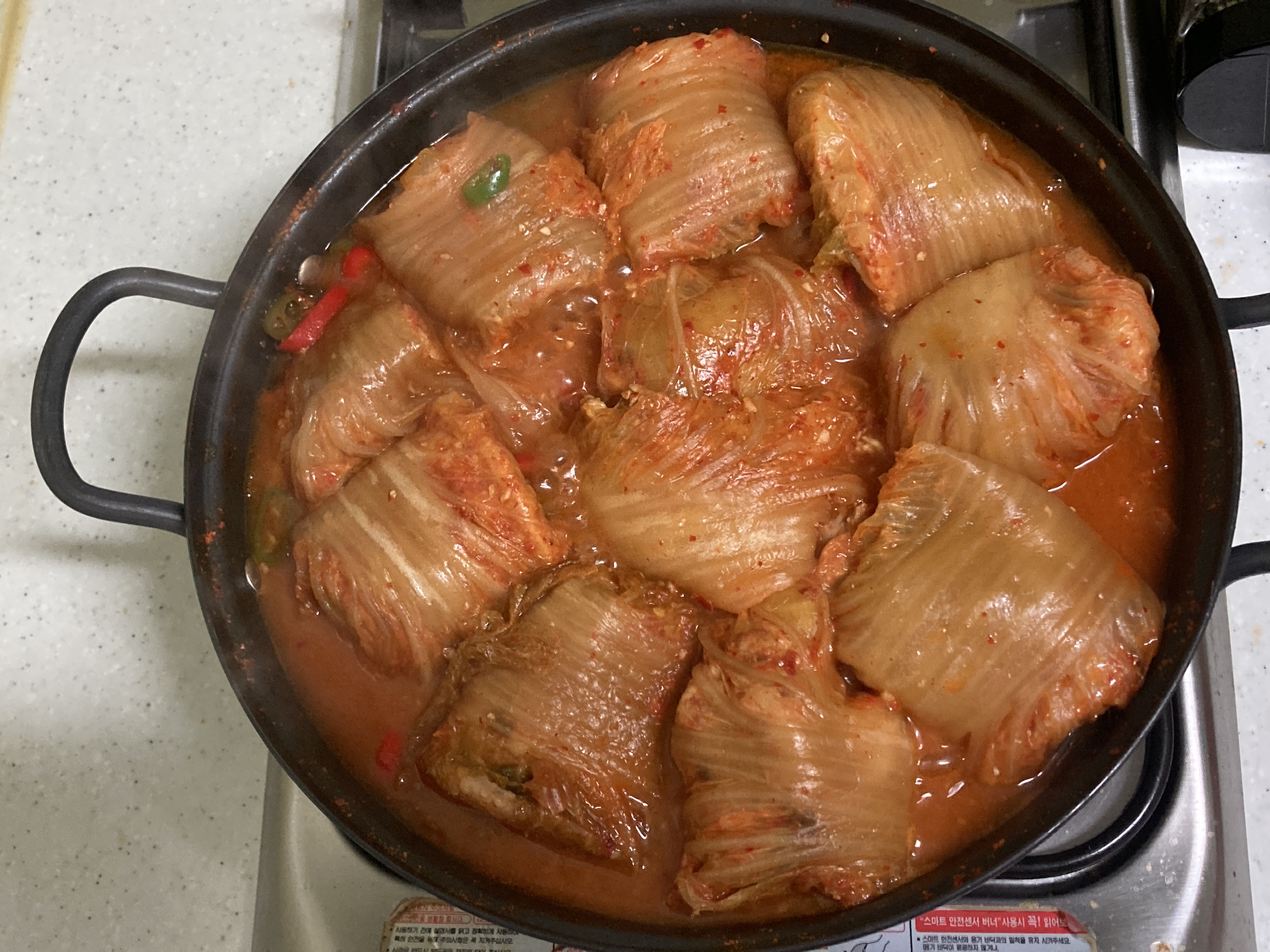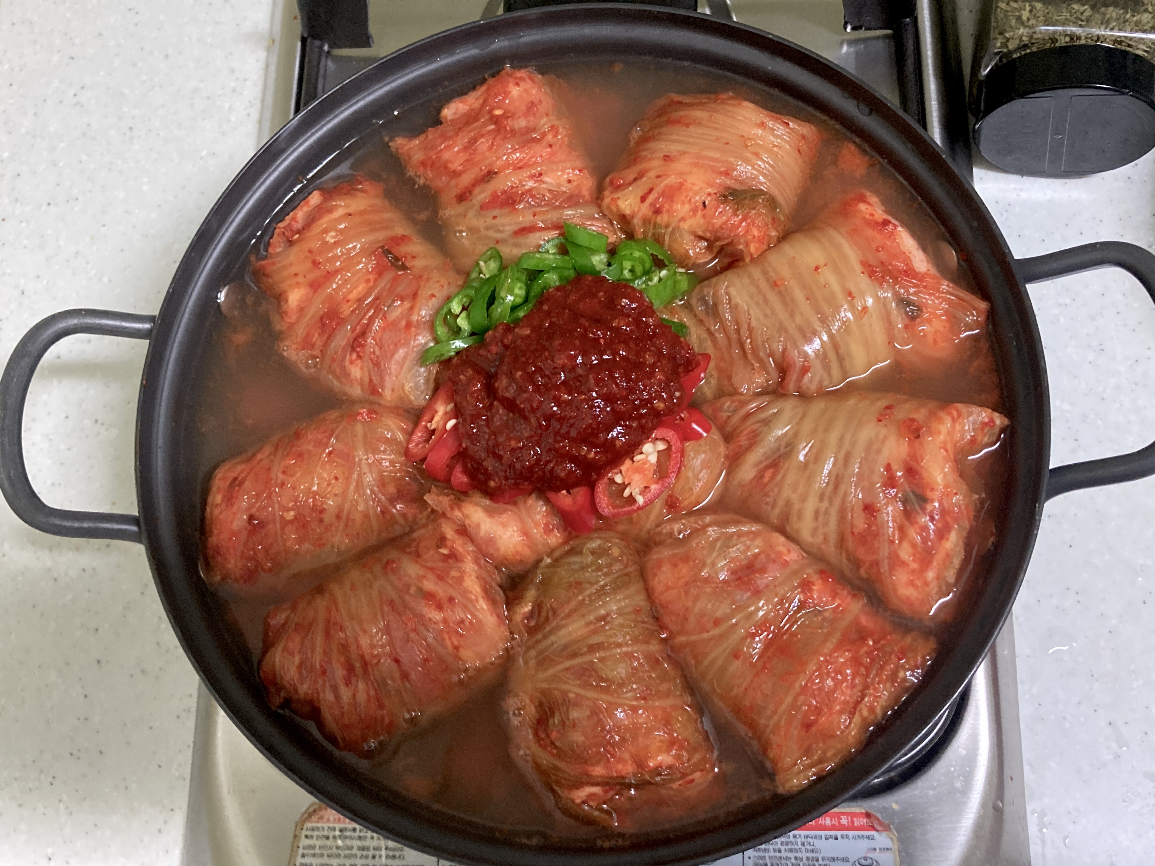 말아놓은 김치는 냄비에 예쁘게 담아줍니다